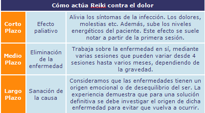 Reiki actúa a largo plazo, sanando nuestro sistema energético y aumentando nuestra capacidad para luchar contra enfermedades crónicas. No obstante, siempre decimos que "Reiki no hace milagros", por lo cuál una infección crónica como infecciones pulmonares, por ejemplo (bronquitis), soriasis o el herpes genital suele necesitar un periodo prolongado de tratamiento de varios meses.